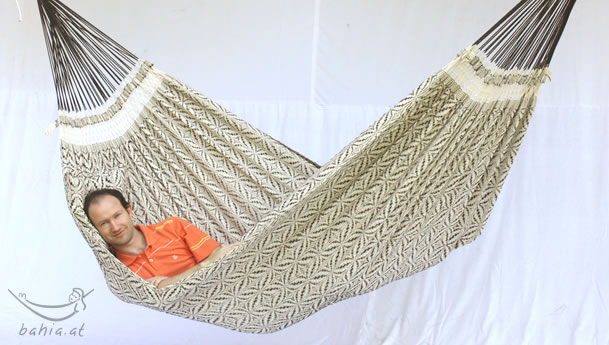 - très beaux raccords points noués faits à la main entre le tissu du hamac et les cordes d'accrochage