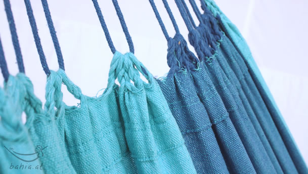 - raccords forts entre le tissu du hamac et les cordes d'accrochage